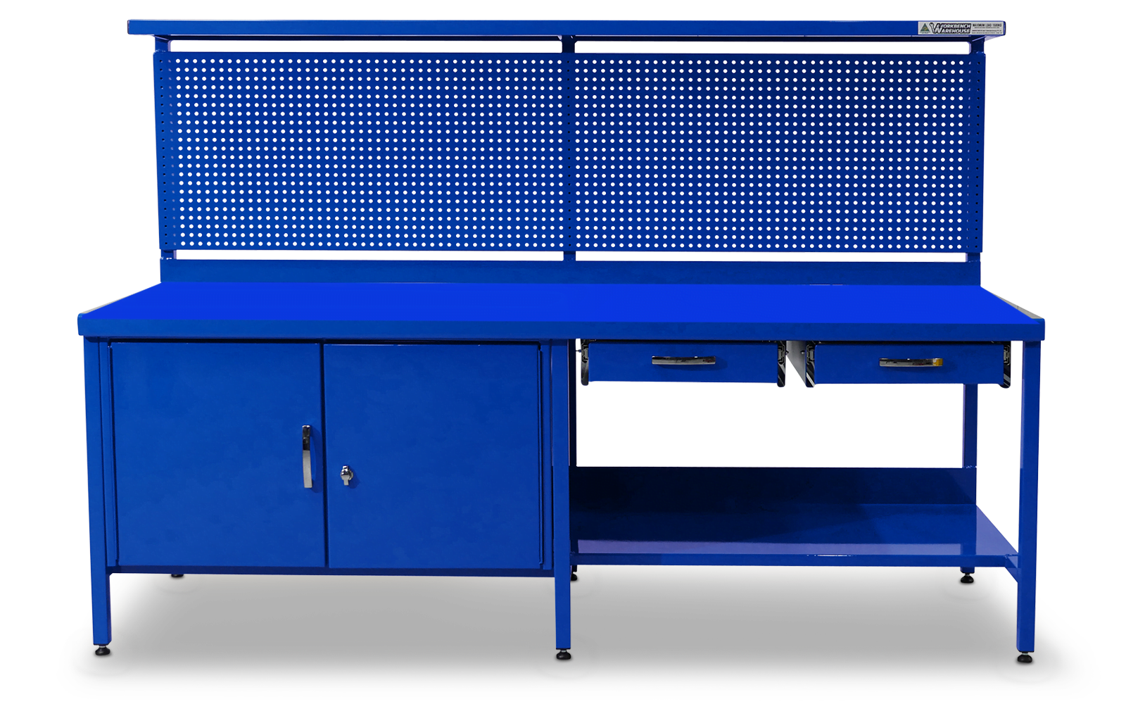 • 2 mm steel pegboard with overhead shelf and accessories pack